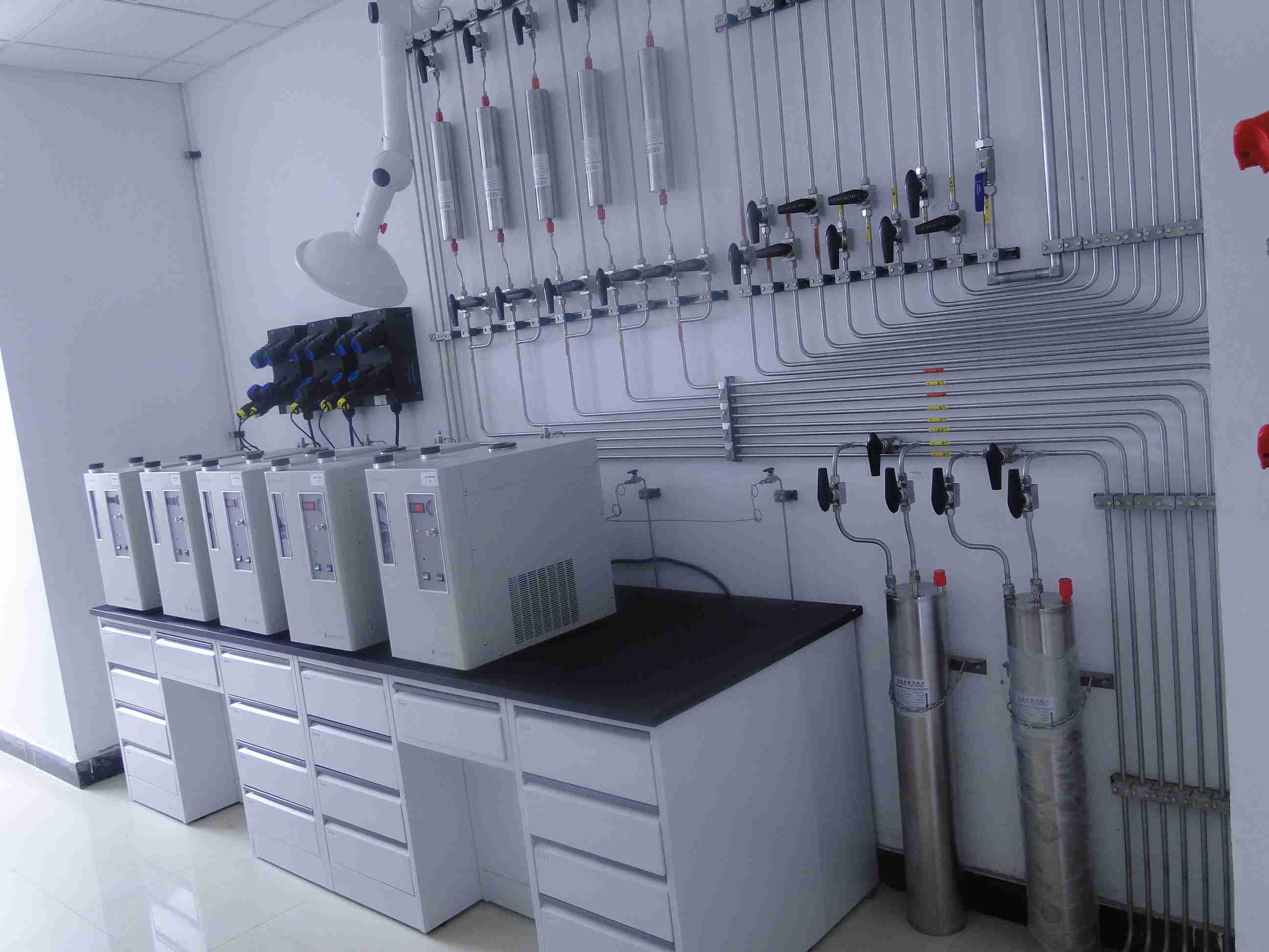 實驗室氣體管道工程主要是為實驗室選用的分析設備提供量值和壓力穩定的標準氣體,保證其儲備和使用的安全性。保障實驗室操作人員在實驗中免受有毒有害氣體的侵害。按照國標要求應該將所用全部氣體存放于獨立儲氣間,并實現集中輸送,組成中中央供氣系統。