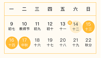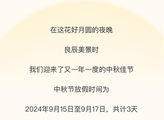 根據(jù)《國(guó)務(wù)院關(guān)于修改〈全國(guó)年節(jié)及紀(jì)念日放假辦法〉的決定》,我司中秋佳節(jié)放假安排如下:、